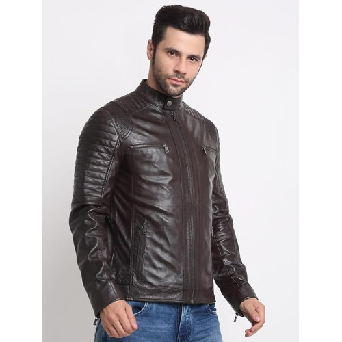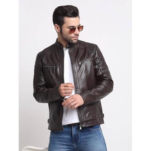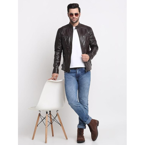 Men’s Casual Stylish Leather Jacket | Men Solid Choco Brown Leather Jacket | Winter Jacket | High Neck | Long Sleeve | Zipper Closure | Regular Fit | Comfortable Fit Jacket Crafted for Men
