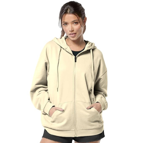 FUNKY MONKEY - Women's Cute Hoodies Teen Girl Winter Jacket Sweatshirts Casual Drawstring Clothes Zip Up Hoodie with Pocket (Beige)
